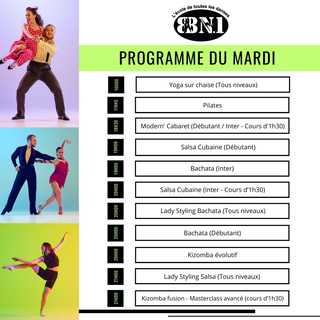 Planning des cours 2025-2026 chez BBN1: faites votre choix en fonction du style désiré et du jour.