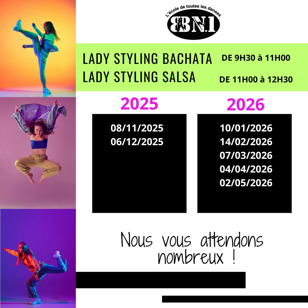 Découvrez l’élégance du Lady Styling : perfectionnez vos compétences fondamentales et maîtrisez les mouvements de la bachata, de la salsa et même de la kizomba. Ce cours vise à vous aider à développer un style plus harmonieux et gracieux. Spécialement conçu pour les femmes, le Lady Styling a pour objectif premier de renforcer votre féminité et votre esthétique, afin que vous deveniez véritablement captivante à chaque regard !